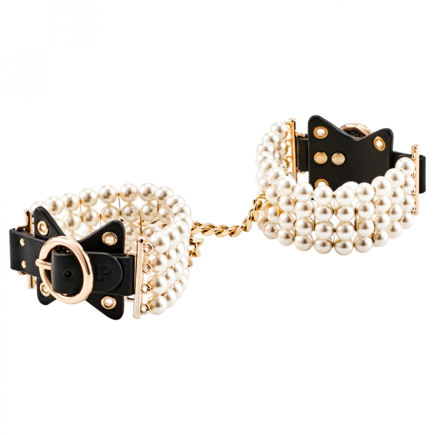 1 pár Allure gyöngyös csuklóbilincs (fekete)