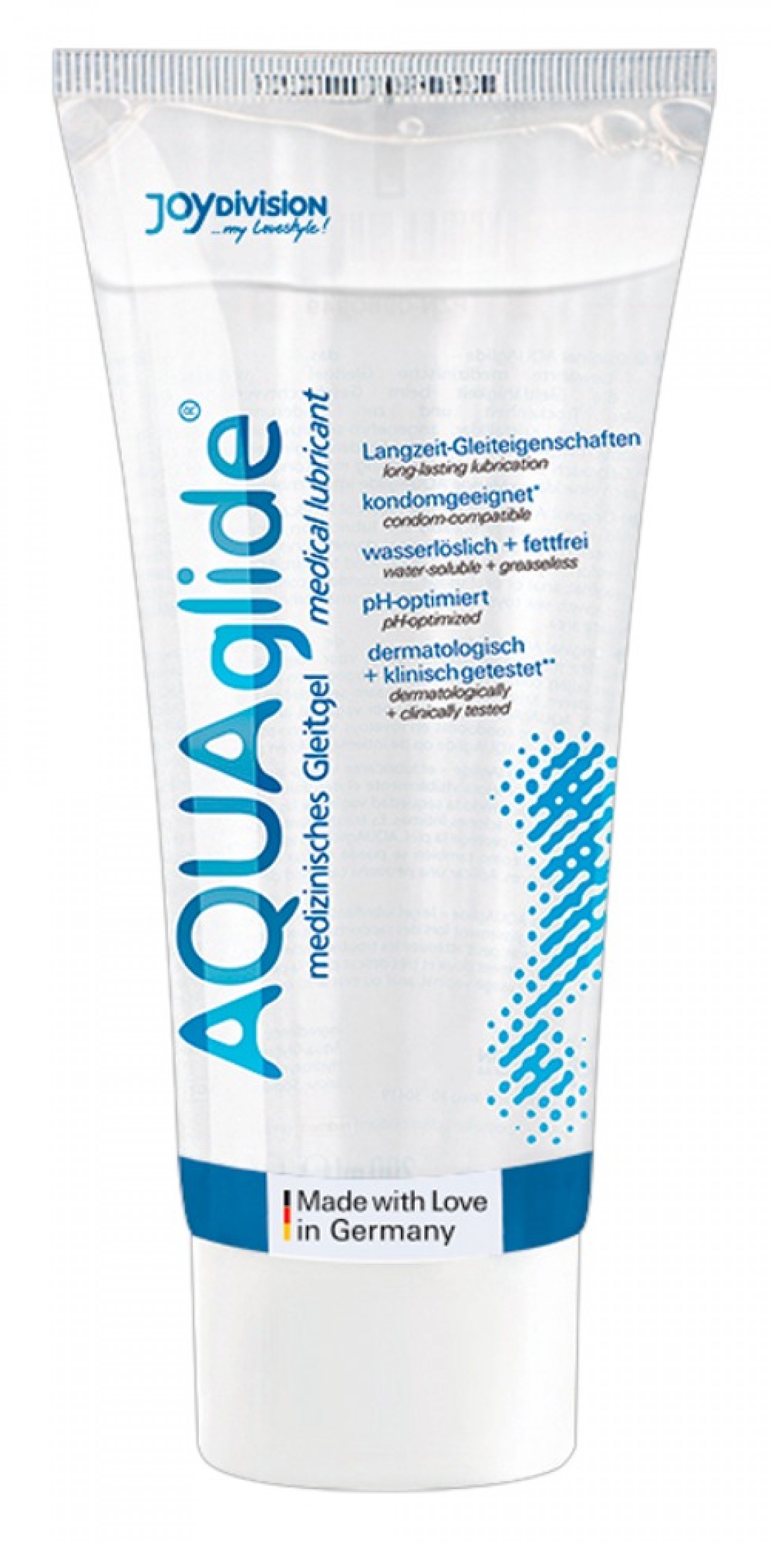 50ml-es kiszerelés. JoyDivision AQUAglide - Vízbázisú síkosító gél optimális síkosító hatással, íz- és illatmentes! Óvszerrel is használható, vízben oldódó és zsírmentes. Bőrgyógyászatilag és klinikailag vizsgált termék.