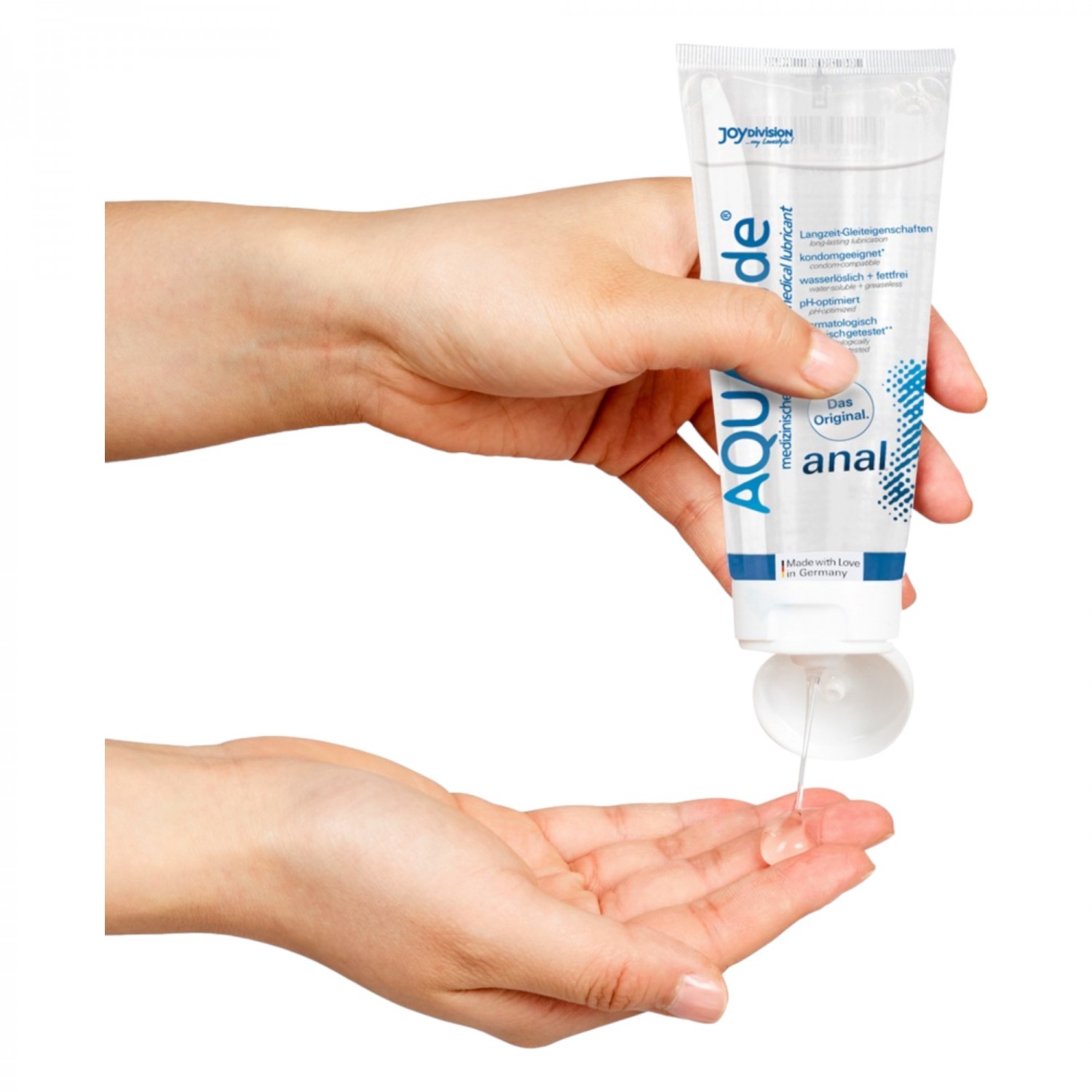 100ml-es kiszerelés. Joydivision AQUAglide - Vízbázisú síkosító gél optimális síkosító hatással, íz- és illatmentes. Óvszerrel is használható, vízben oldódó és zsírmentes. Bőrgyógyászatilag és klinikailag vizsgált termék.