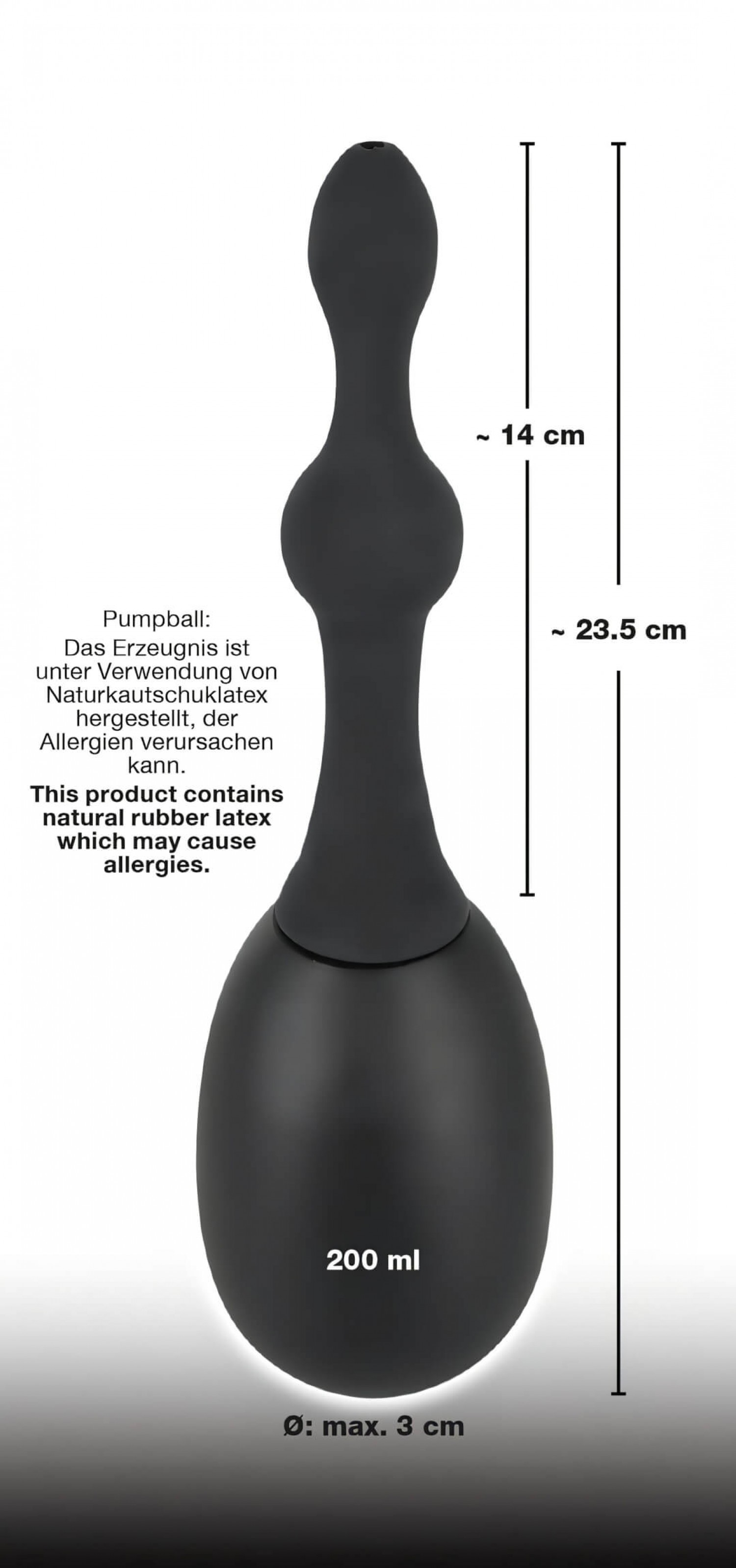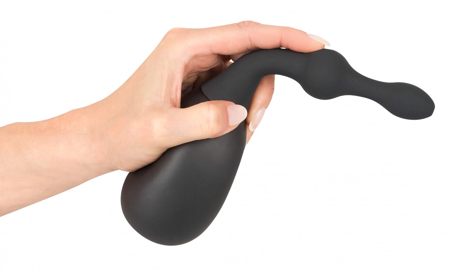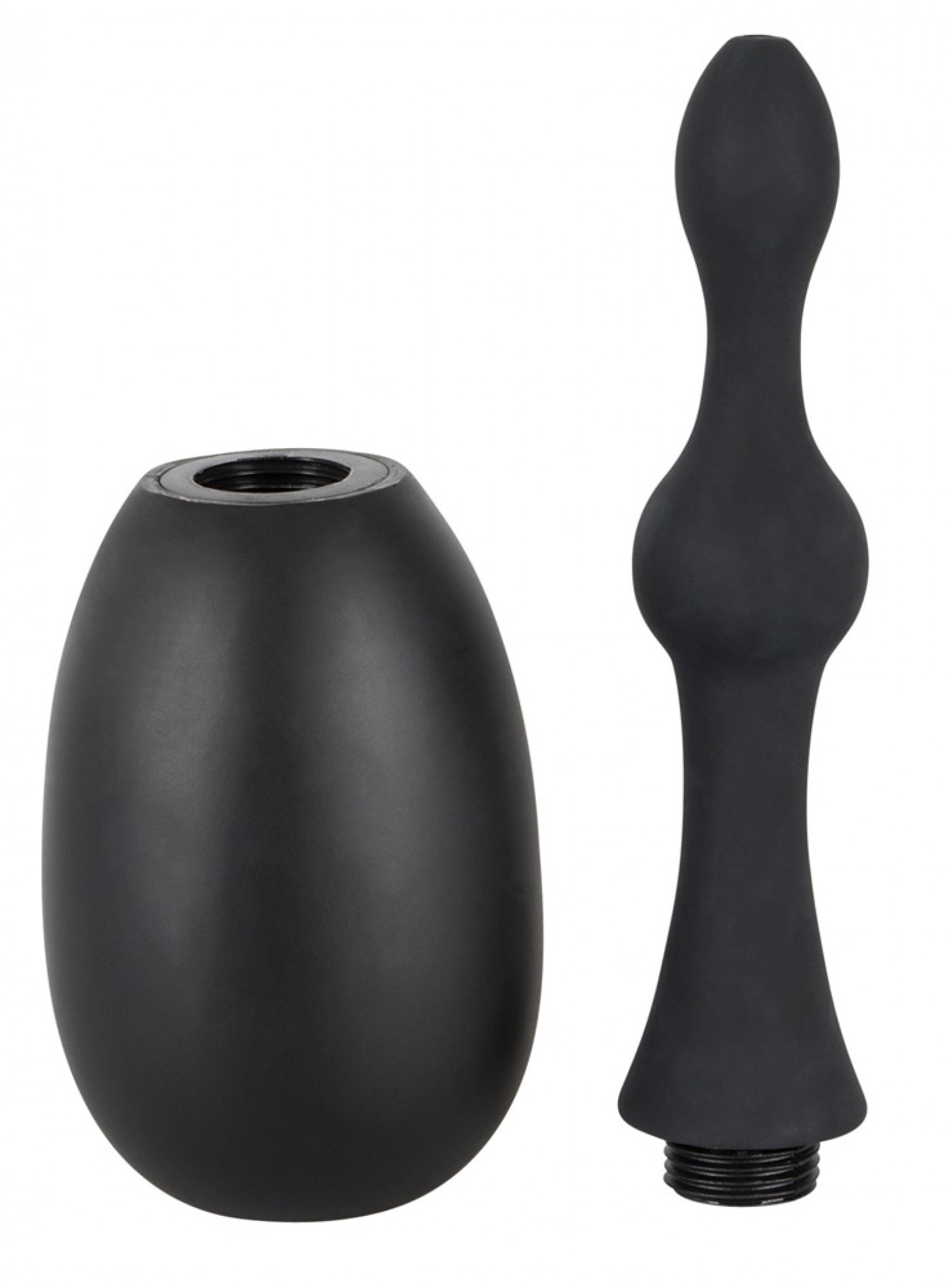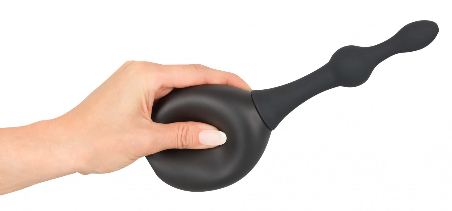 Bársonyos bevonatú, kiváló minőségű, rugalmas szilikonból készült beöntő kanül, gömbös felszínnel, csavaros menettel és gumis befecskendező labdával.