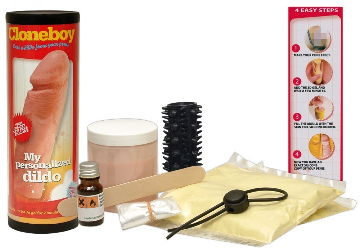 Élethű dildót is készíthetsz saját péniszedről, a szett segítségével. A csomag tartalma: Kiváló minőségű bőrtapintású 2x3D gél - amely orvosilag tesztelt, szilikon gumi, 1 pár műanyag kesztyű, erekció tartó pánt, különleges felületű szilikon mandzsetta, spatula és részletes használati utasítás. Elegendő a pénisz méretét 15cm hosszúságúra és 4cm átmérőjűre megnövelni.