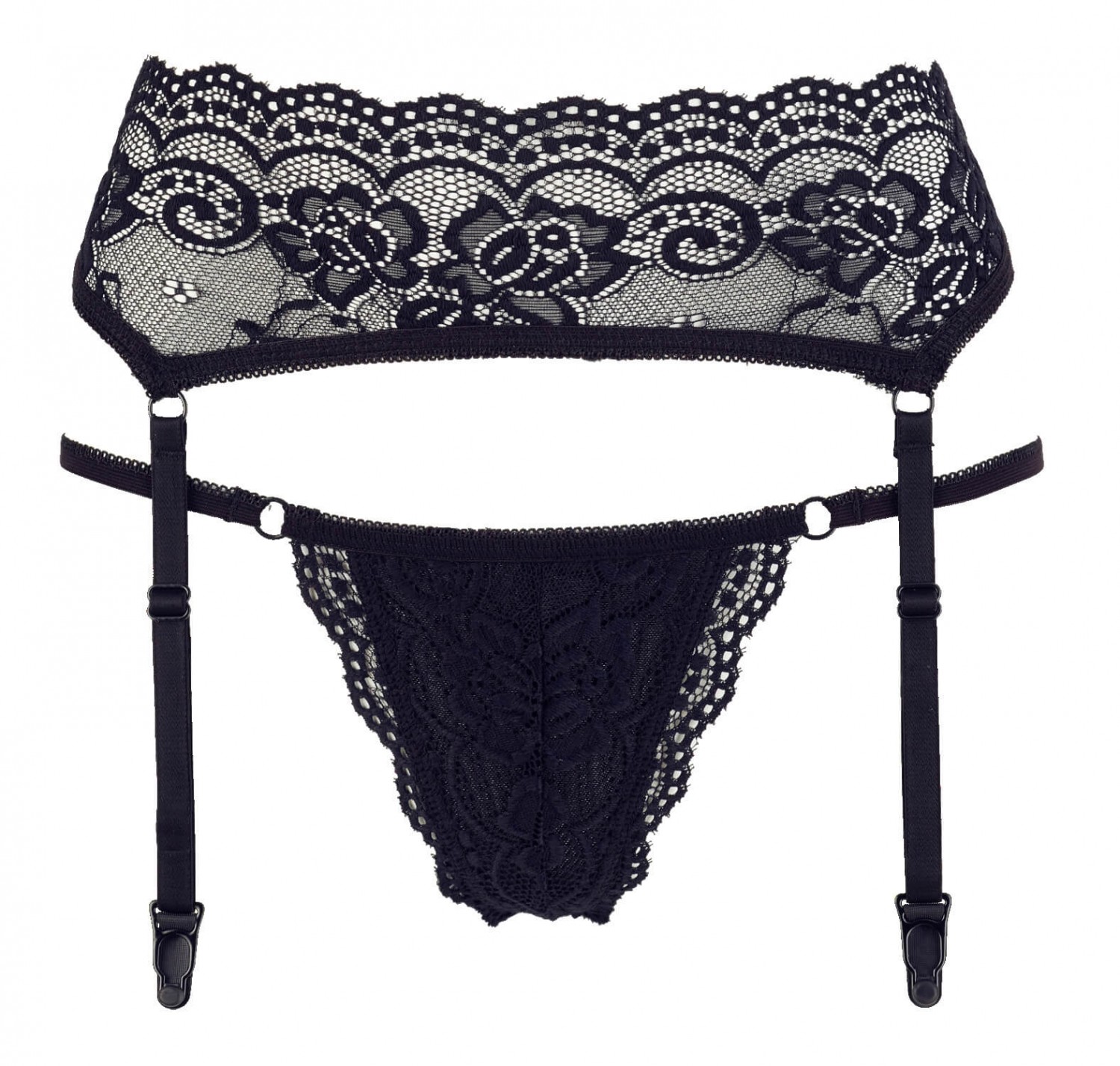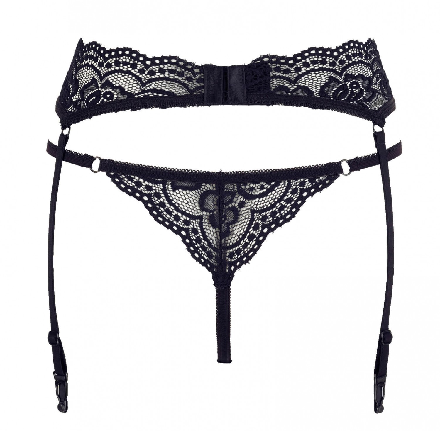 Cottelli - csipke harisnyatartó és tanga (fekete)