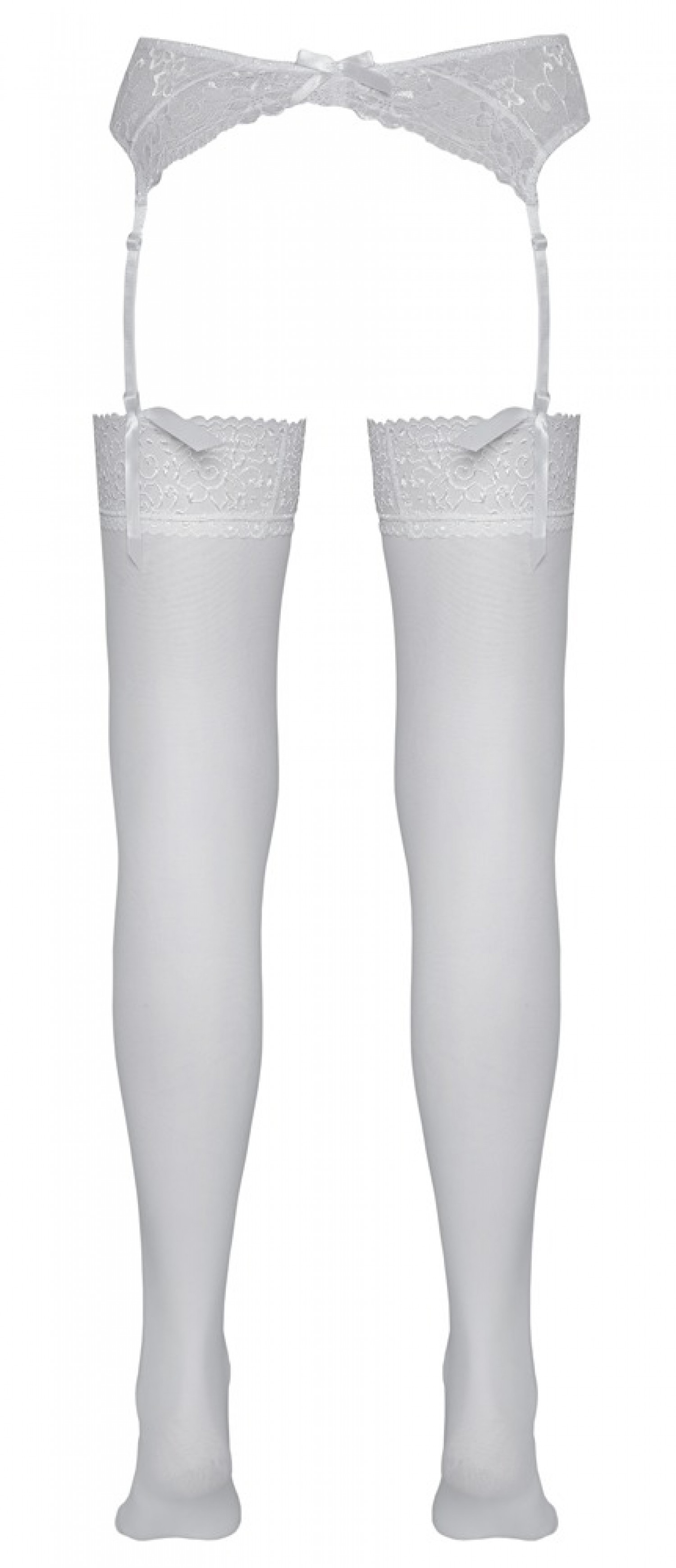 Csodálatosan szép, fehér színű harisnya, amely minden nőnek szép lábat varázsol. Apró virágcsipkével a kb. 8 cm-es szegélyen. Formált, kémyelmes lábfejrésszel.