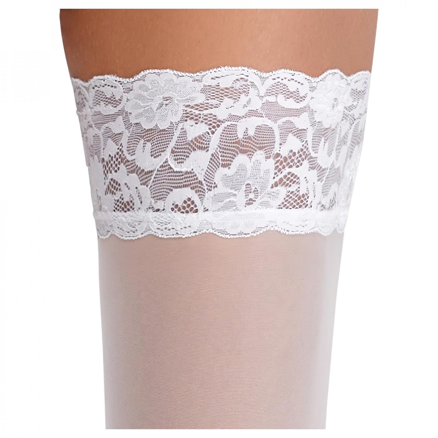 1 pár fehér combfix, 9 cm-es csipkeszegéllyel és szilikon megerősítéssel