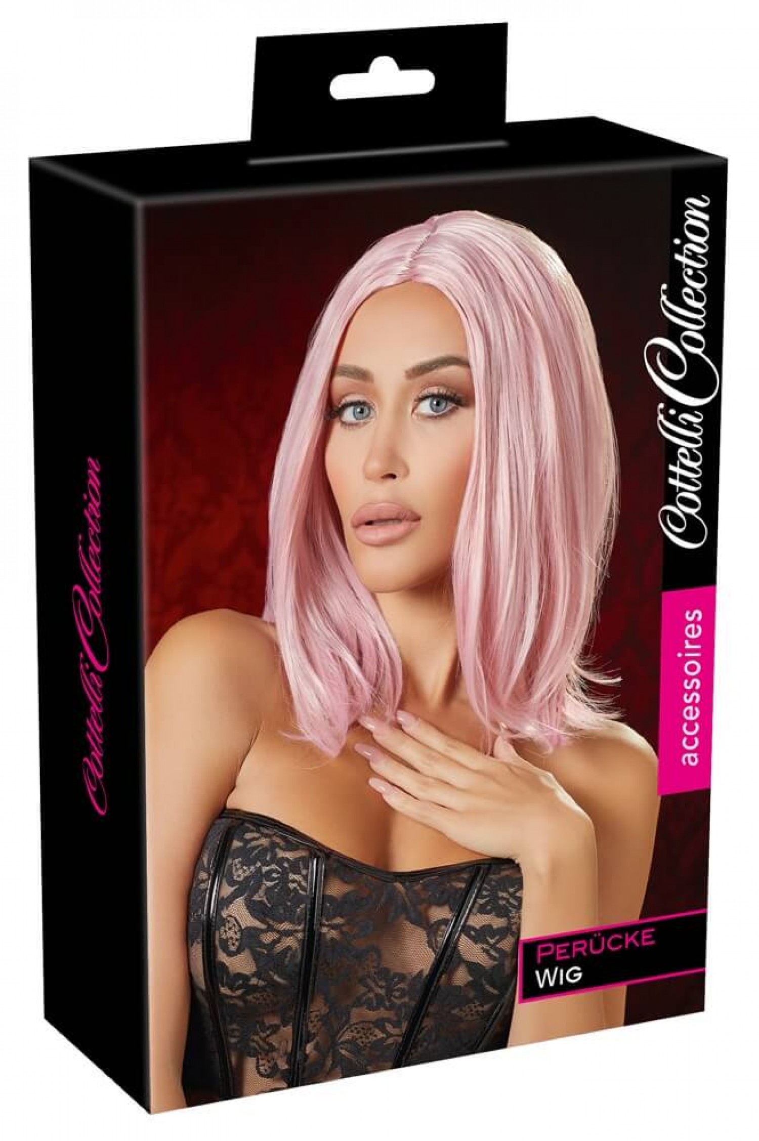 Középhosszú, egyenes paróka, bob fazonban, frufru nélküli kialakítással.