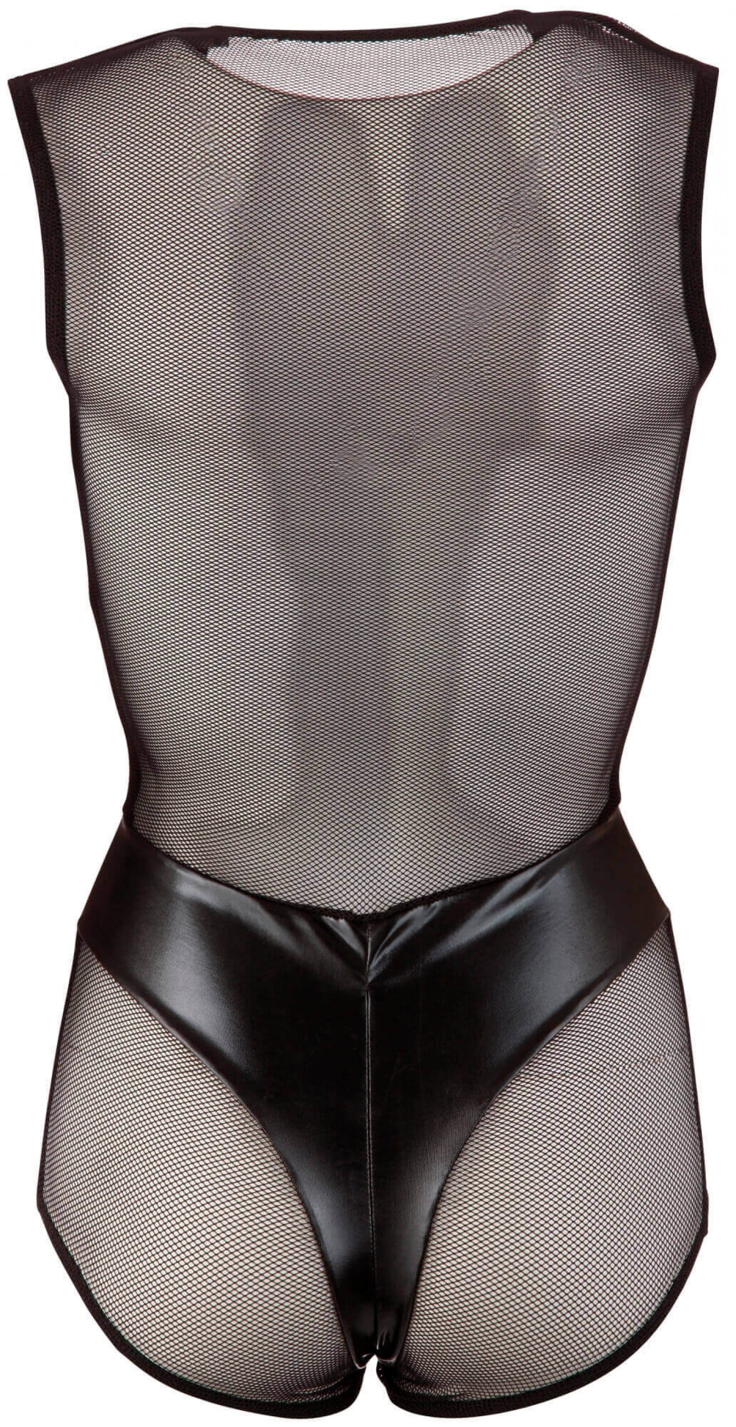Csillogó body áttetsző neccből és fényes anyagból.