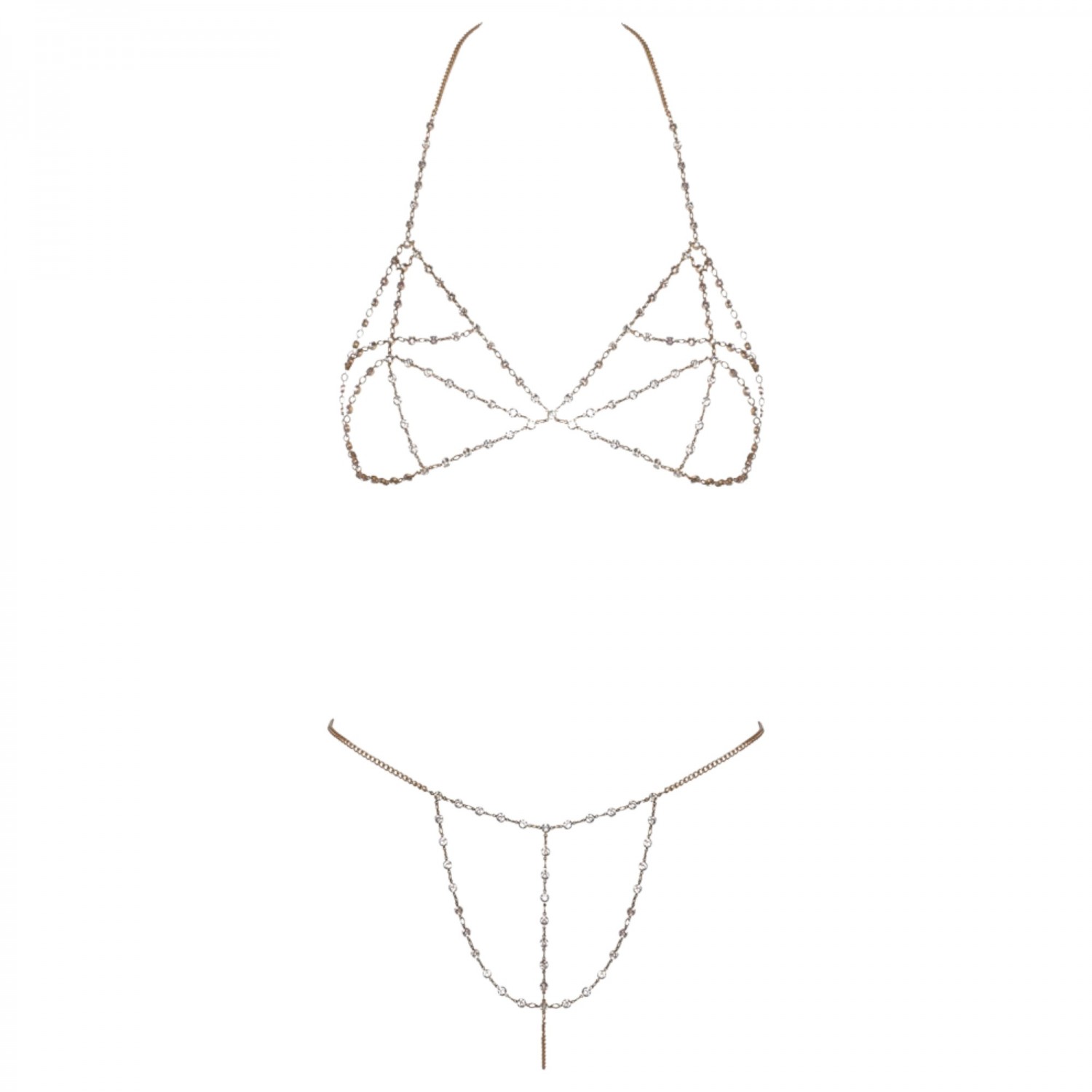 1 darab aranyszínű lánc bikini (melltartó és tanga) 3 kapoccsal