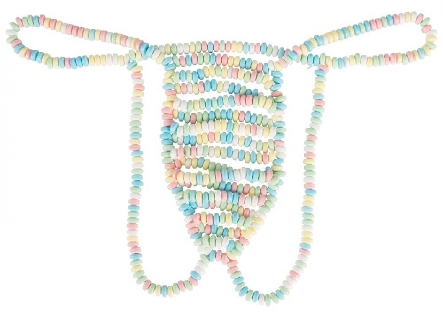 Közkedvelt, édes, színes cukorkagyöngyökből fűzött férfi tanga, rugalmas, gumis pántokkal és az intim pillanatok garantáltan édesek lesznek! Fald fel kedvesed!