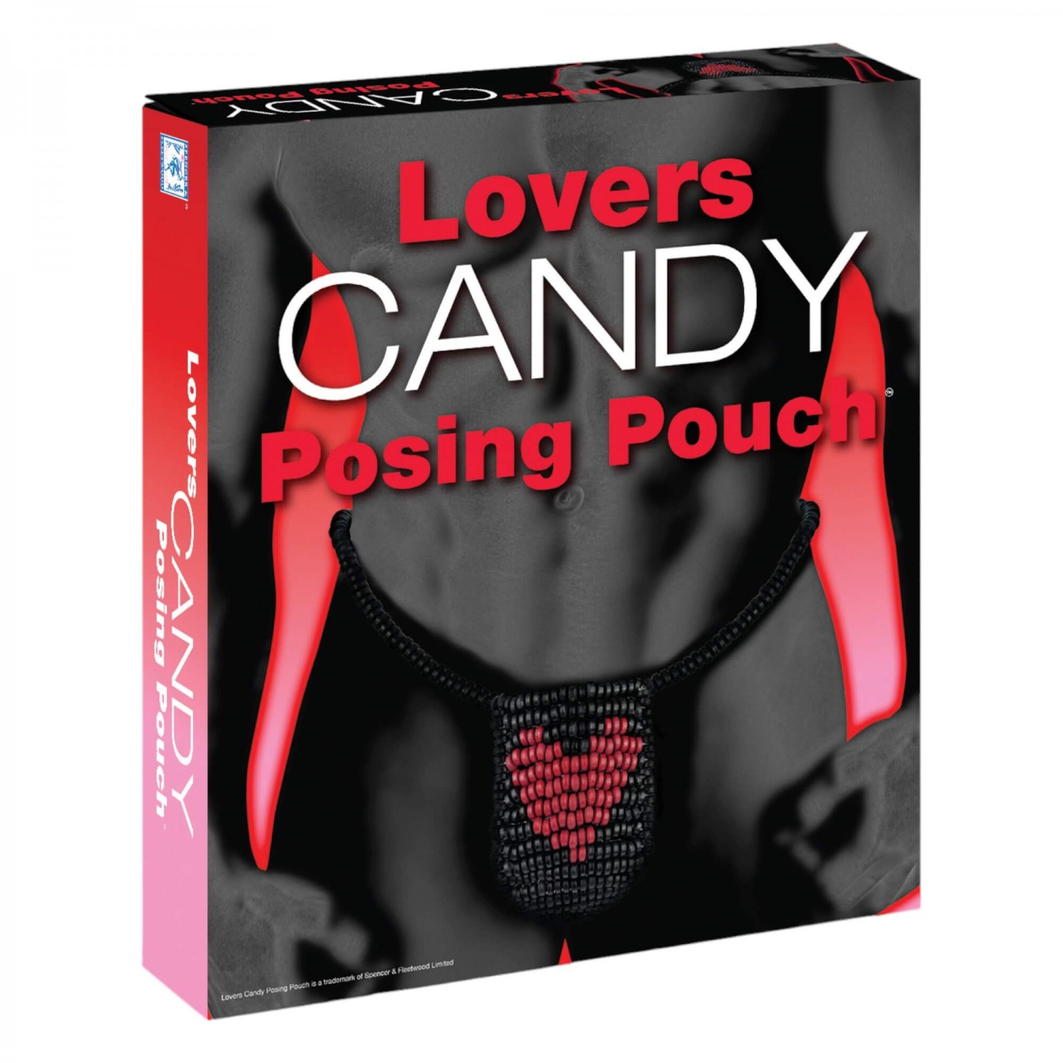 1 darab ehető férfi tanga fekete cukorkákból, elöl piros szívmintával