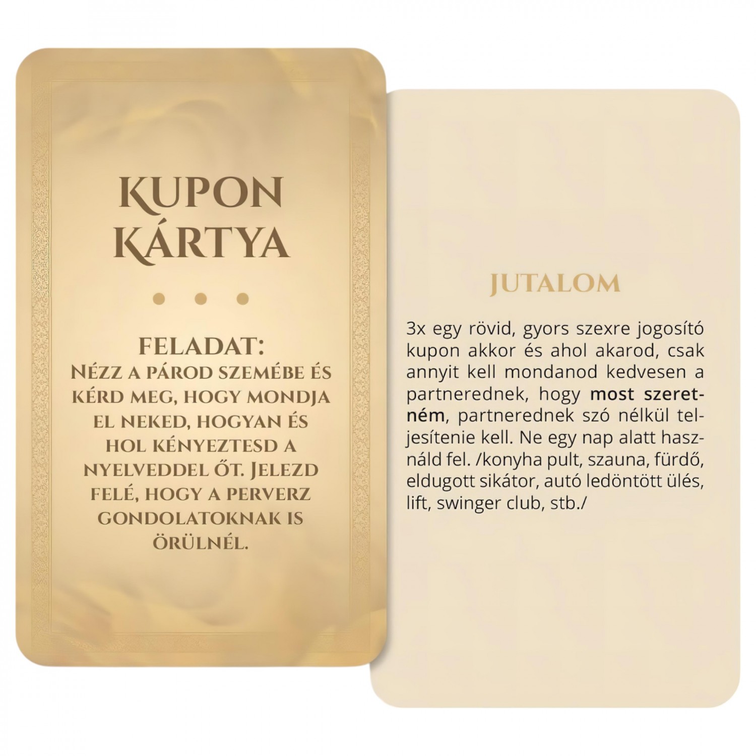 - A társasjáték célja az, hogy felfrissítsük, izgalmat és újabb aspektusokat vigyünk a kapcsolatunkba.