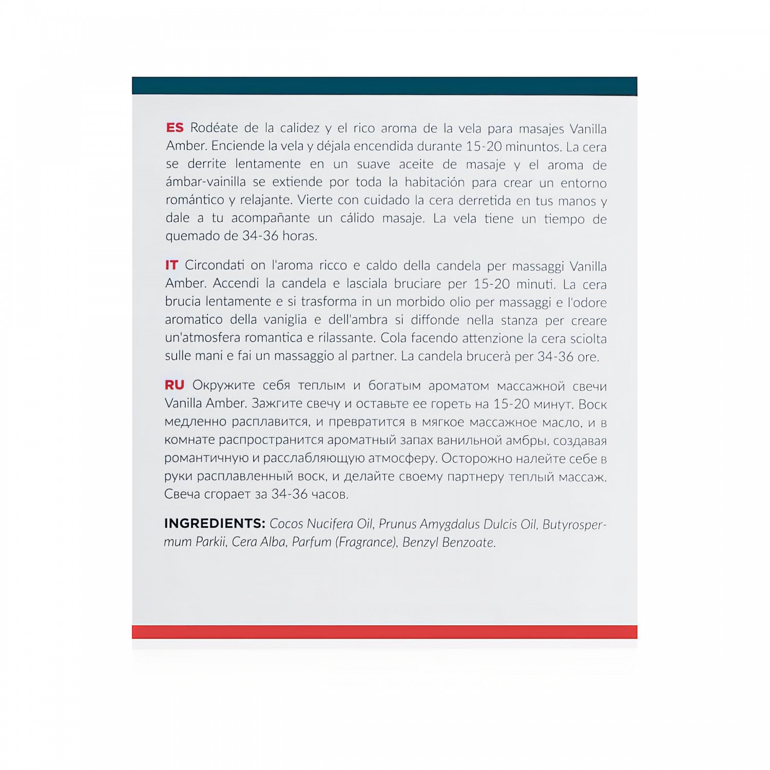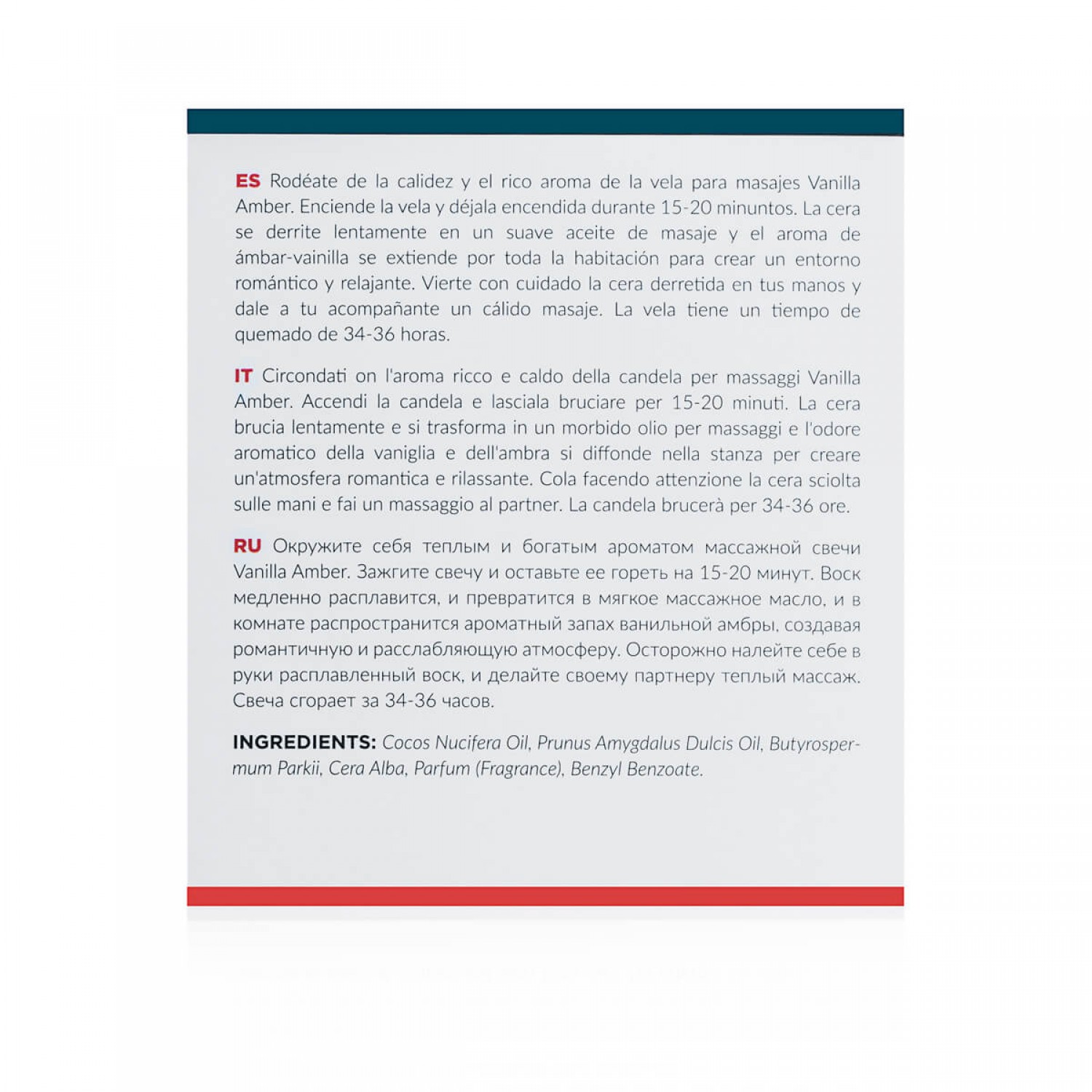 Érzéki masszázsgyertya, vanília és borostyán különleges illatkeverékével, melynek köszönhetően a relaxációs, vagy intimmasszázs közben igazán a Paradicsomban érezheted magad és vágyad is szárnyra kel!