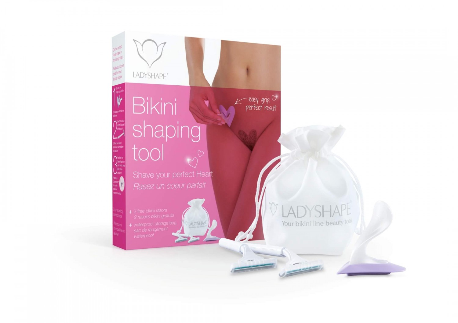 - különleges, derékszögű kialakítású borotvák (2db)Használat:Nem kell mást tenned, mint az anatómiailag tökéletesen formált, puha, csúszásmentes, gumírozott alsórésszel ellátott, szív formájú sablont a kívánt intim részhez (szeméremdomb) tenni a fogantyú segítségével, ezután az egyedi kis, speciális, derékszögű kialakítású borotvával már csak szépen körbe kell borotválni és máris kész a tökéletes szív.TIPP: A mindig perfekt formához és karbantartáshoz már csak naponta, vagy két naponta ki kell igazítani a fazont.Hölgyek és Urak is egyaránt használhatják.Használati útmutató letöltése (PDF)