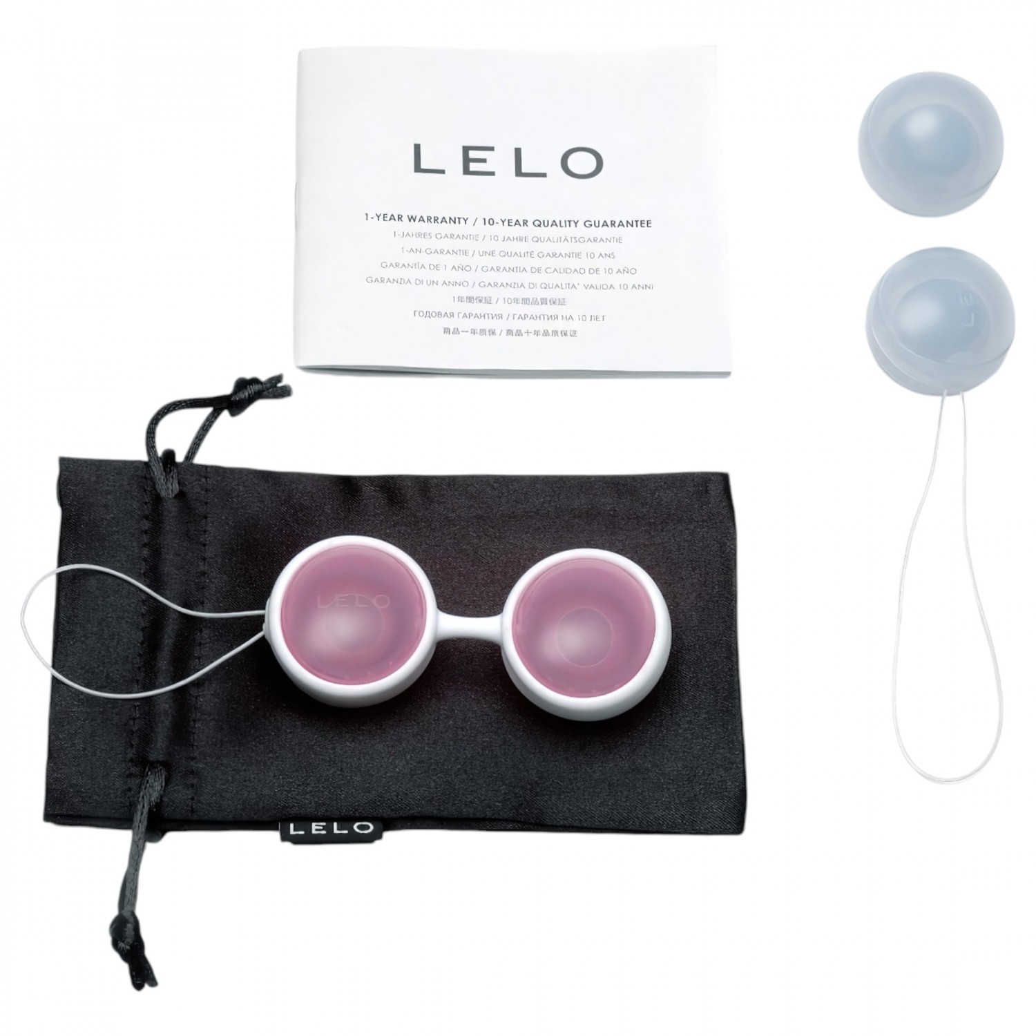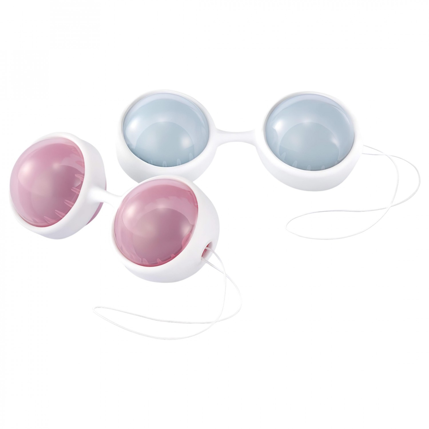 A kéjgolyók köztudottan javítják az orgazmuskészséget - intim tornát végezve segítik a gátizmok mozgását jobban érezni, lehet velük különálló izomfejlesztő gyakorlatot végezni, és aktus közben a hüvelybe felhelyezett golyó stimulálja a G-pontot. Az áttetsző műanyagból készült golyók belsejében bársonyos borítású kis golyó van, ami mozgás közben ringatózik, ezzel is összehúzódásra késztetve a hüvelyizmokat. Extra halk kialakítás. A két rózsaszín és két kék golyó kombinálható egymással - külön-külön is használhatók (a zsinórosak), vagy a fehér szilikon összekötőbe helyezhetők (1 zsinóros és 1 sima). A kék golyók súlya 37g, a rózsaszínűek súlya 28g. A termékhez tartozik egy szaténtáska is (a higiénikus és diszkrét tároláshoz), fekete díszdobozban. LELO termék.
