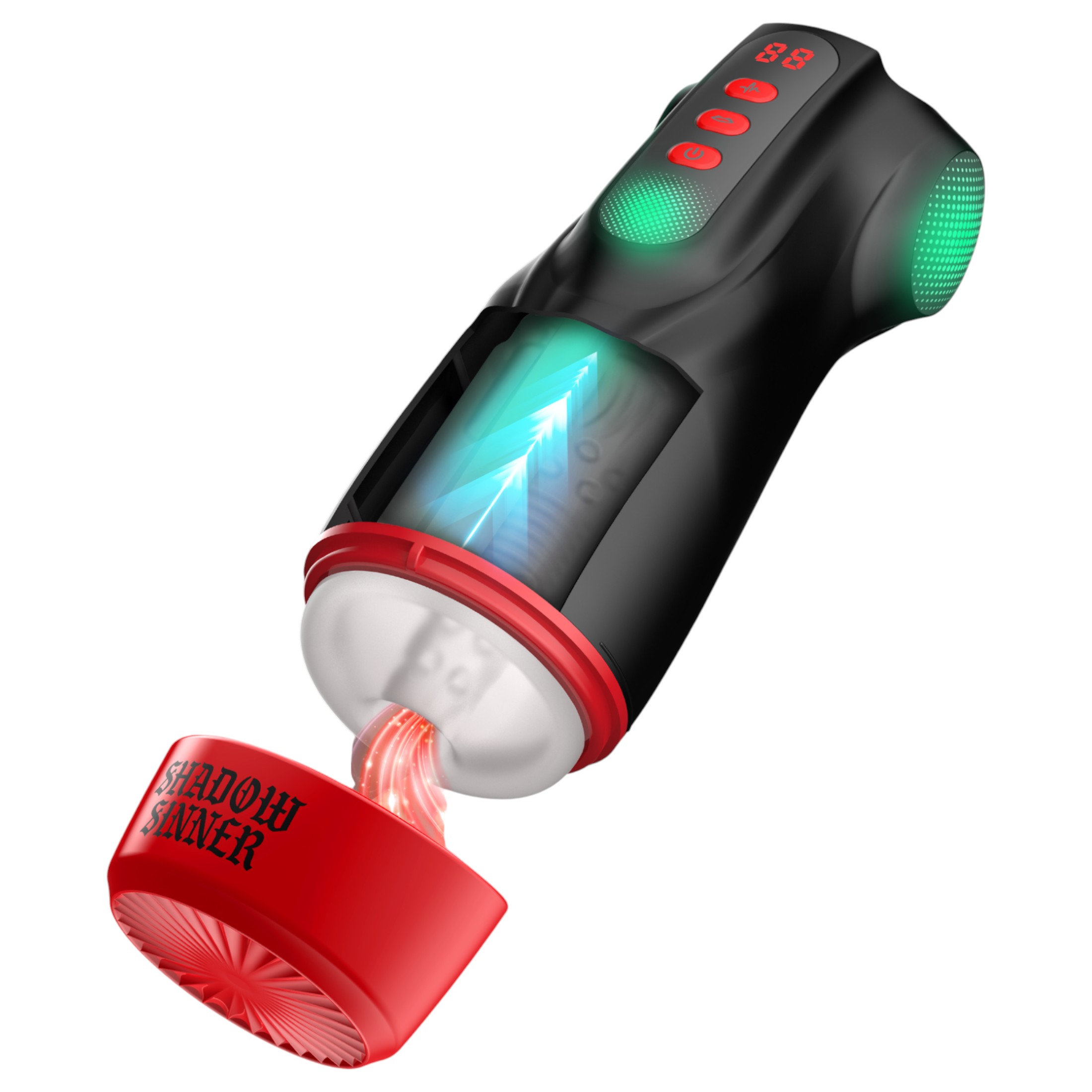 1 db Masturs Raven szopó-rezgő AR maszturbátor (fekete-piros)
