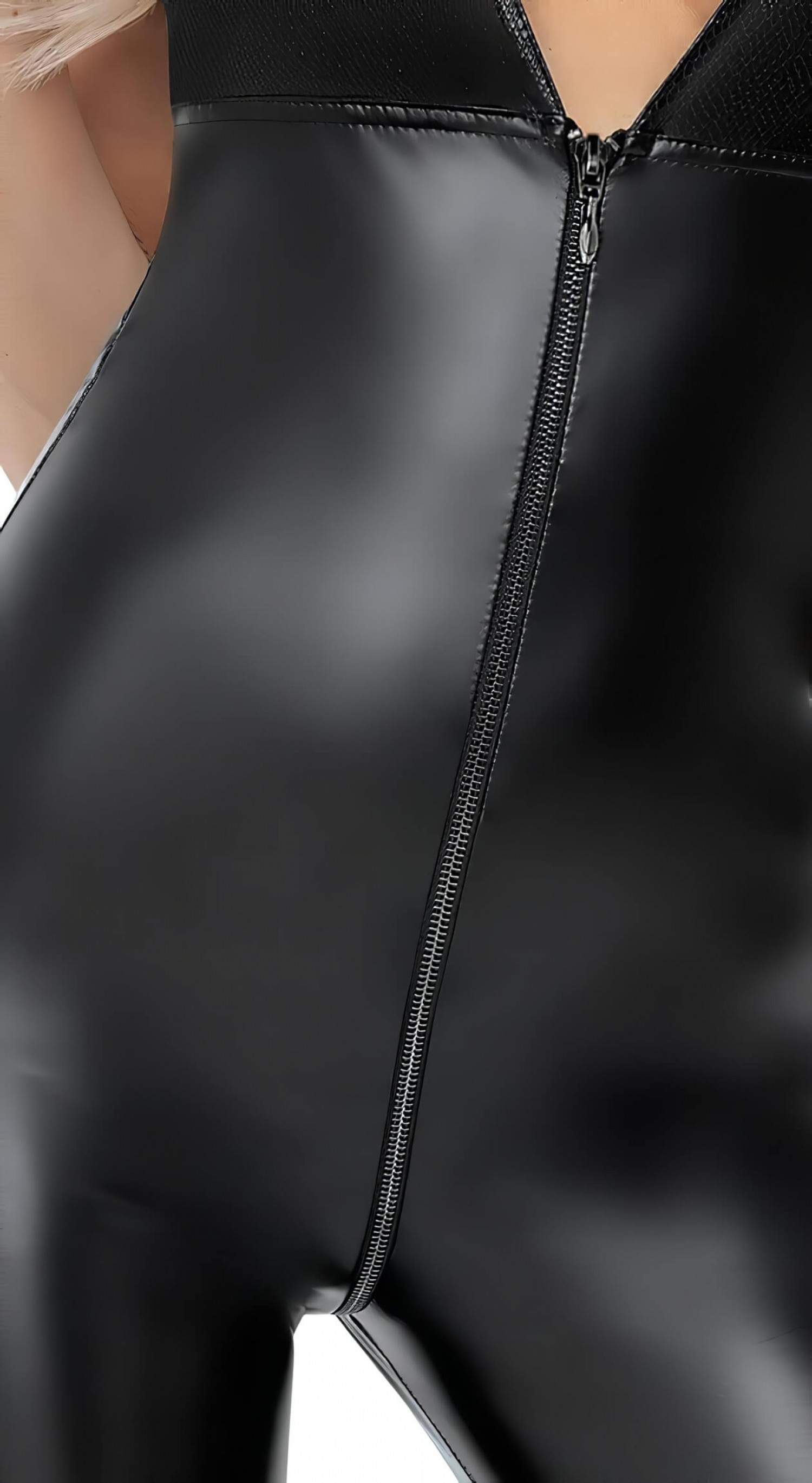 középen, 3 utas cipzárral - popsiig, előlről és hátulról is nyitható