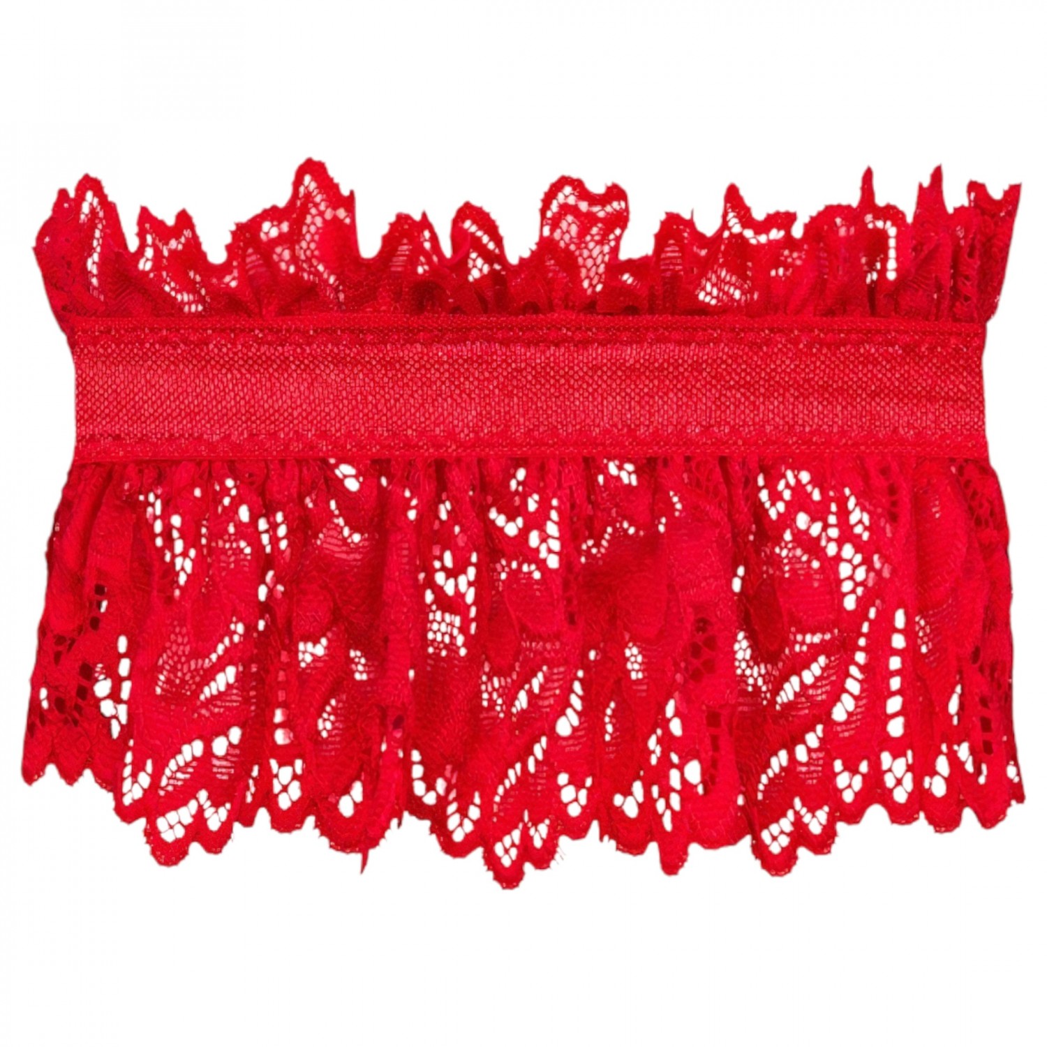 1 db piros színű, csipkés harisnyakötő szatén masnival