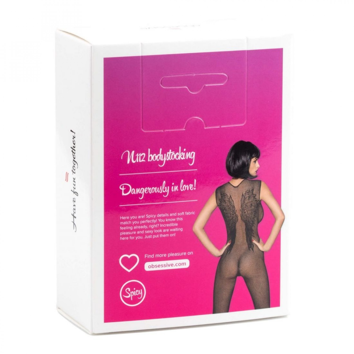 Az Obsessive N112 testharisnya vagy szexi cicaruha egy nagyon sűrű szövésű aprószemű rugalmas necc anyagból készült őrülten szexi fehérnemű. A szeméremnél nyitott overall abszolút arra lett tervezve, hogy még szex közben se kelljen tőle megvállnotok és a vetkőzéssel bajlódnotok! V alakú mély dekoltázsal rendelkezik a lábfej része pedig zárt ezért magassarkú cipővel is kényelmesen hordható, ezzel is még jobban feltüzelve a hangulatot. A bodystocking elején absztrakt mintát találsz a hátulján pedig angyalszárny díszíti, de ez ne tévesszen meg, ördögi termék ez, amely még a pokolnál is forróbb hangulatot teremet majd a hálószobádban!