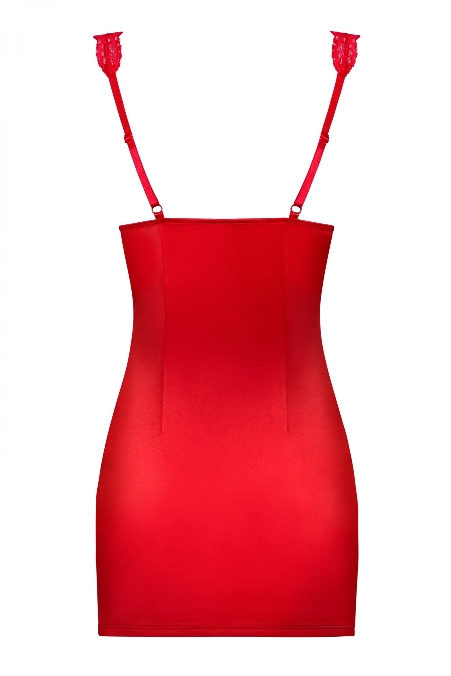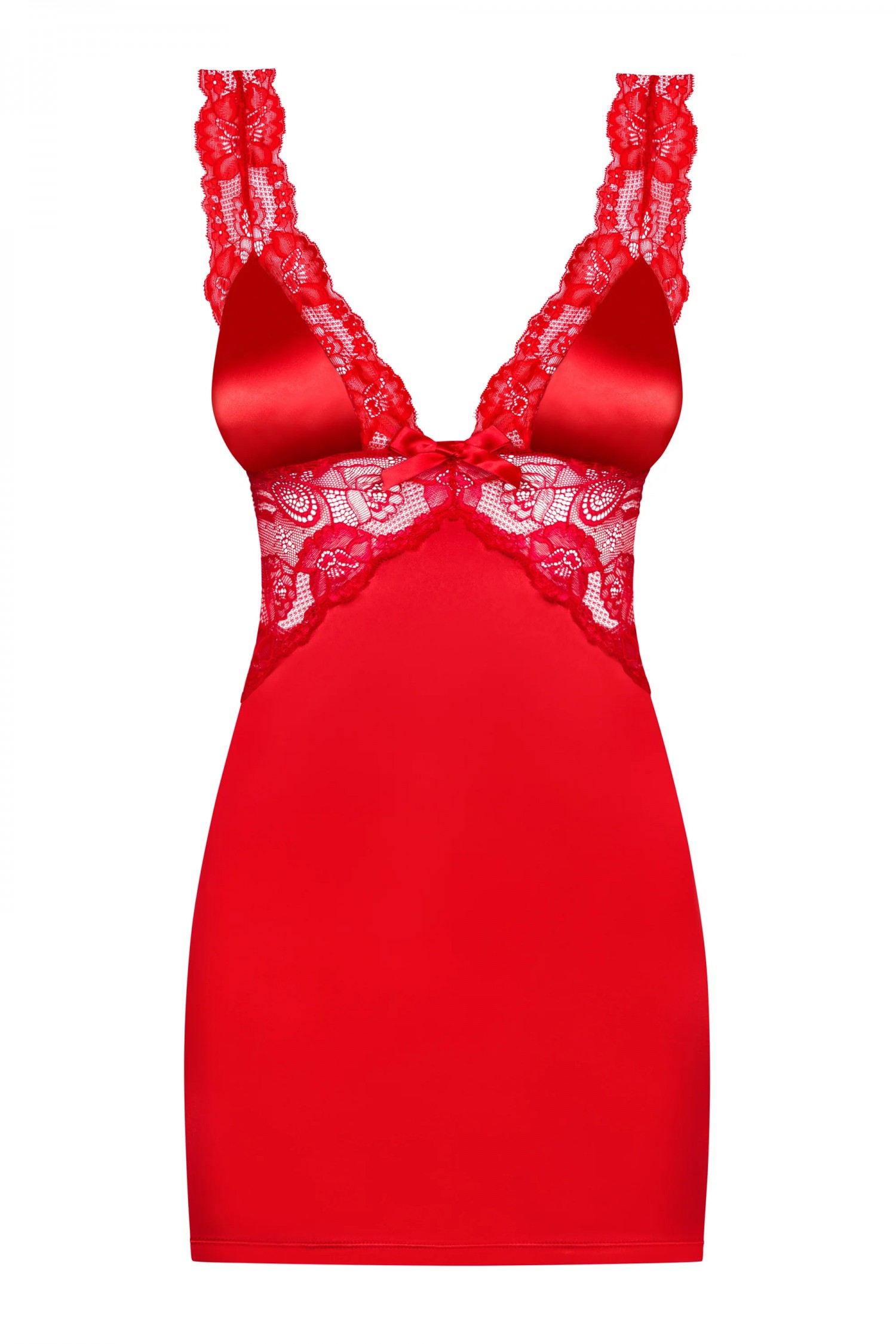 Állítható spagettipántokkal, mély V-dekolátzzsal, a kebleket kiemelő varrással, rugalmas csillogó szaténból készült szexi hálóruha áttetsző csipkeberakásokkal.