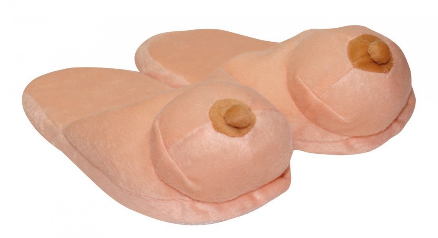 Nagyon kellemes, puha, meleg natúr színű plüssből készült papucs (1 pár), melynek tetején, natúr színű formás, kerek mell csücsül, pajkos mellbimbókkal.
