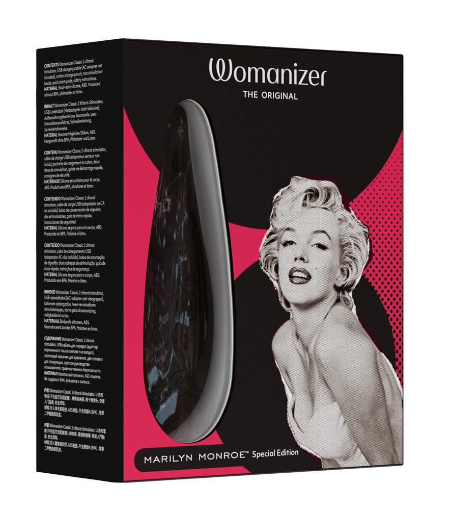 A gyönyör sosem megy ki a divatból! Marilyn Monroe örökérvényű érzékisége ihlette a Womanizer speciális kiadású léghullámos csiklóizgatóját. Szinte érintés nélkül, levegőhullámokkal rezegteti meg a csiklót, melynek eredménye a semmihez sem fogható, gyors és kielégítő csiklóorgazmus!
