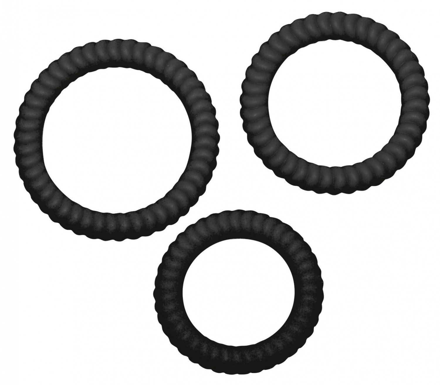 Strapabíró,erős, ugyanakkor rugalmas, fekete szilikonból készült, három részes gyűrűszett. A mindig tökéletesen merev és tartós erekcióért, mindkét fél örömére. Mindhárom gyűrű különleges, barázdált, stimuláló felszínnel készült. Egy 2,6cm, egy 3cm és egy 3,5cm átmérőjű gyűrű a csomagban. A termékek együttesen és külön-külön is használhatóak. Anyaguk: szilikon.