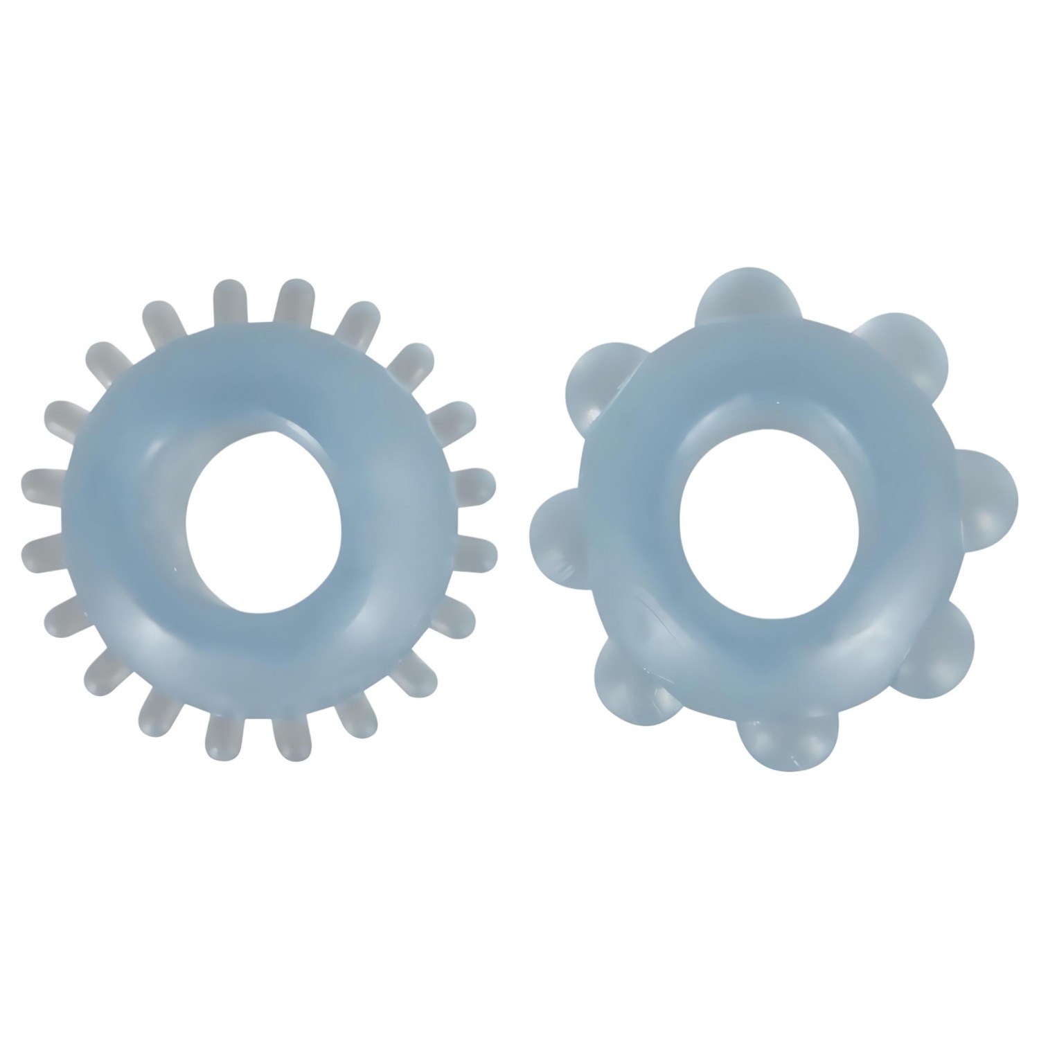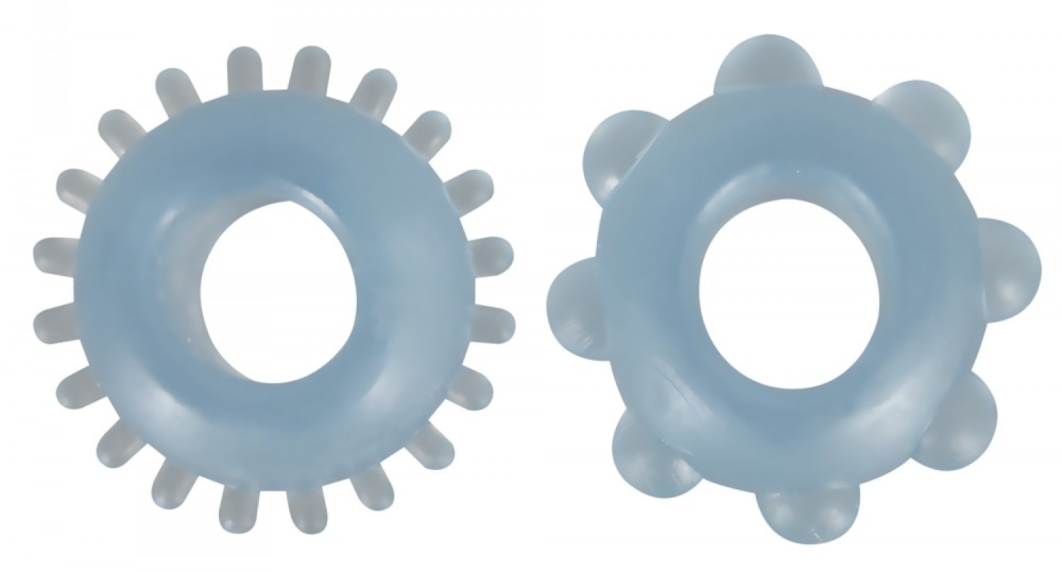 Vastag falú, rendkívül rugalmas anyagból készült 2 részes péniszgyűrű szett. Az egyik puha tüskés, a másik gömbökkel borított.
